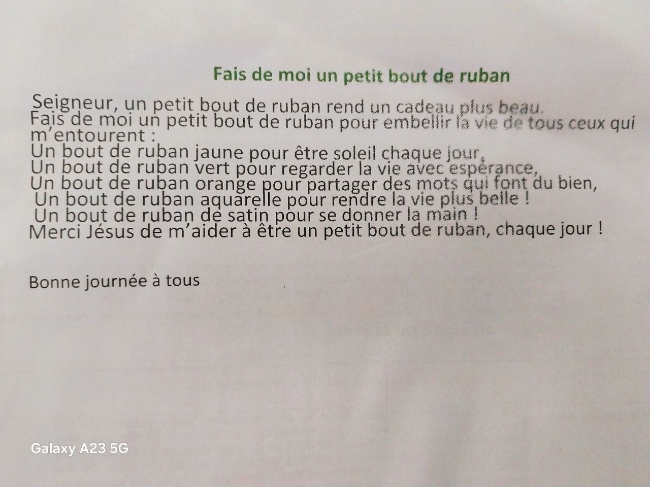 Vous trouverez la prière lue en fin de benediction ainsi que les informations de la paroisse.